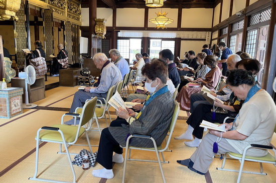 秋の法要を当初の九月第一週から第二土曜日に遅らせたのに昨年は当日35度を超えることになってしまったので、今年からは第四土曜日に。それでも岐阜市は31.3度まで上がったのですが、まあなんとか、本堂を開け放し、扇風機を回してしのぐことができました。さすがに法要を十月にまでおくらせると、こんどは十二月の報恩講との間隔が狭まってしまいます。十月になると稲刈りなどでお時間の取れない方もおられるので、できるかぎり九月中のおつとめとしたいのですが、気候の温暖化によってはそれも考えないといけなくなるかもしれません。なんといっても、暑い季節にお参りいただける皆様のことが第一ですから。